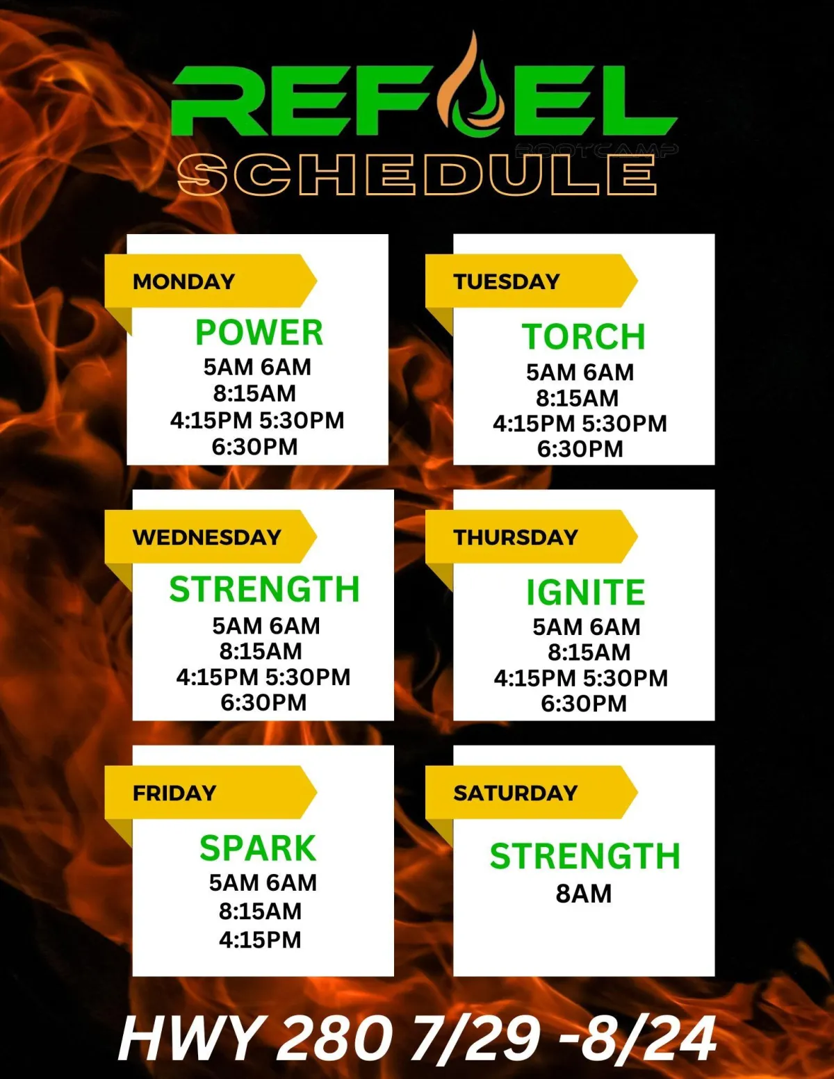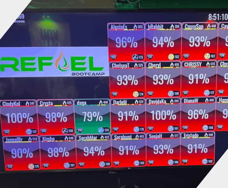REFUEL Bootcamp is a dynamic community for all fitness levels with the shared goal of self-improvement. Our 50 minute bootcamp classes are designed to maximize strength and endurance while sculpting your body. All classes are trainer led for proper form, and visual TV's for correct exercise movements.