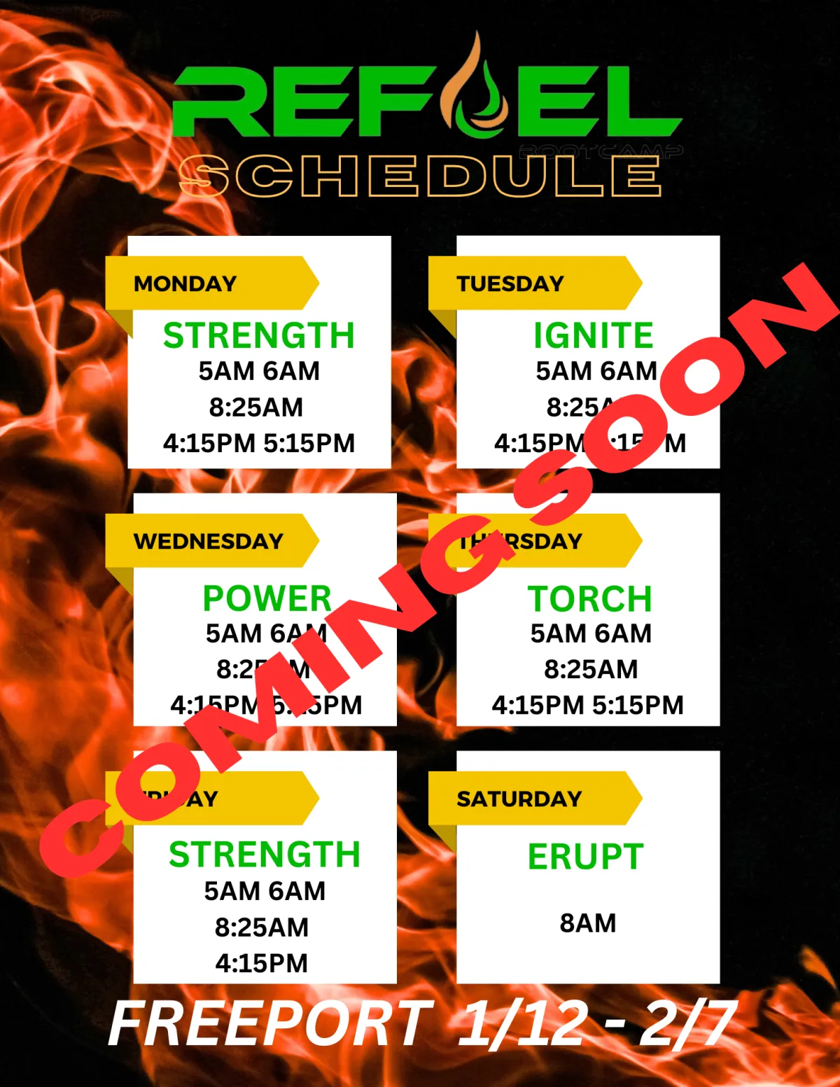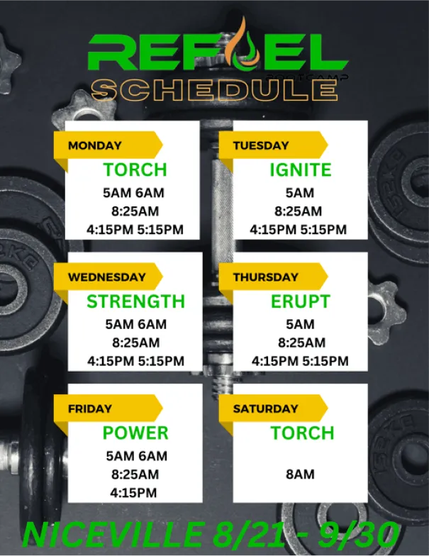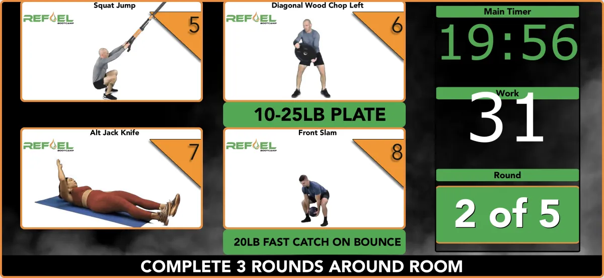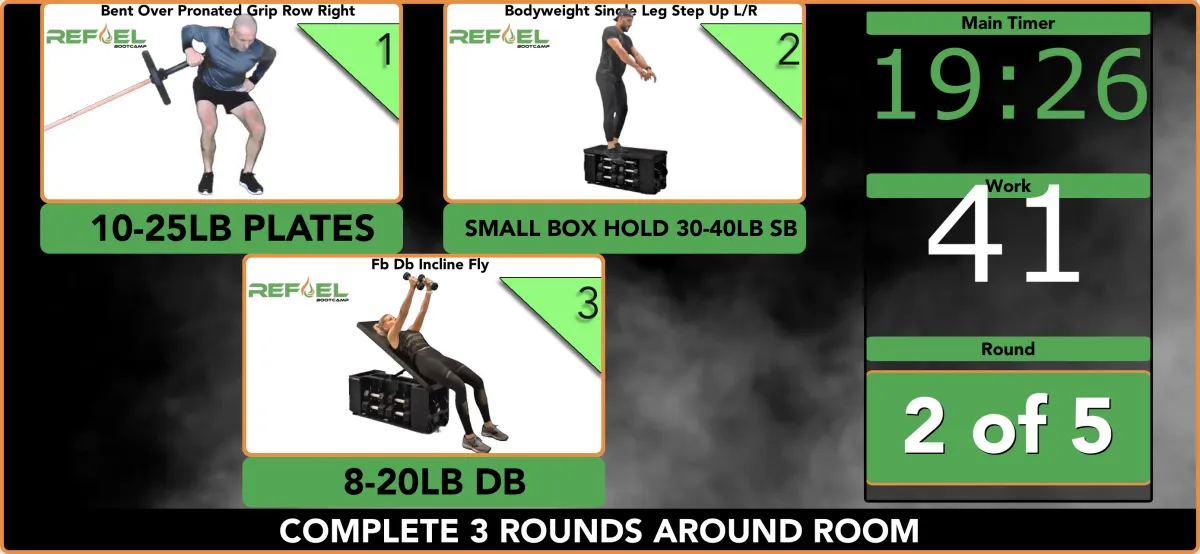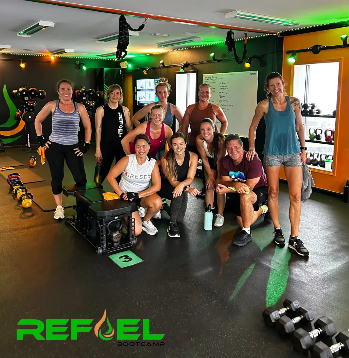 At REFUEL Bootcamp, we're dedicated to saving you from the hassles and uncertainties of the gym experience. With meticulous planning, our facility offers a seamless workout journey. Our TV screens display exercise videos for each station in the circuit, ensuring you always know what to do. More than just a gym, we provide a supportive gym family that holds you accountable, making your fitness goals our top priority. Your success is our passion, and at Refuel Bootcamp, we're here to help you achieve it.